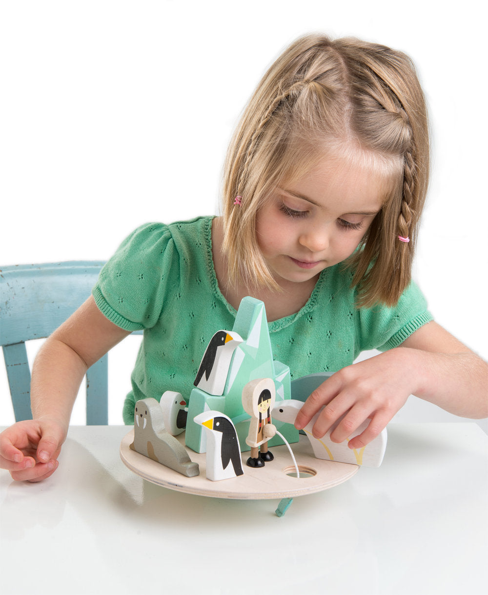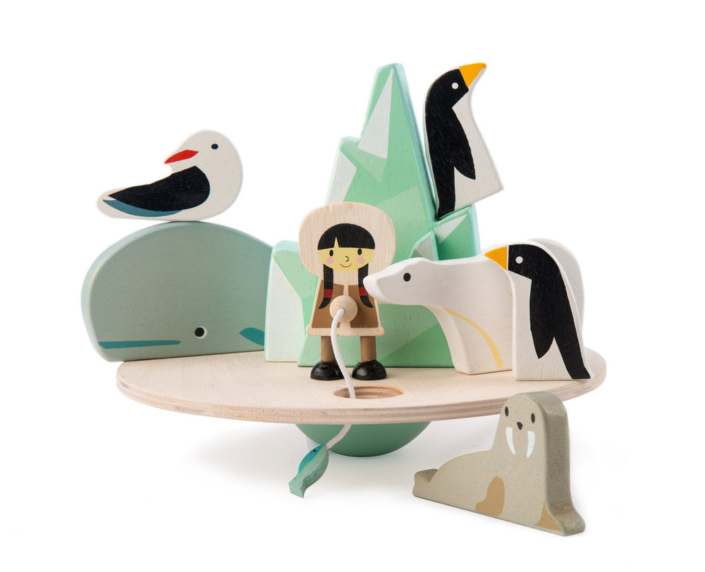 Set Includes: An artic circle balancing board, with 2 pengiuns, a whale, awalrus, a polar bear, a seagull, a iceberg and a little friendly inuit fishing girl.