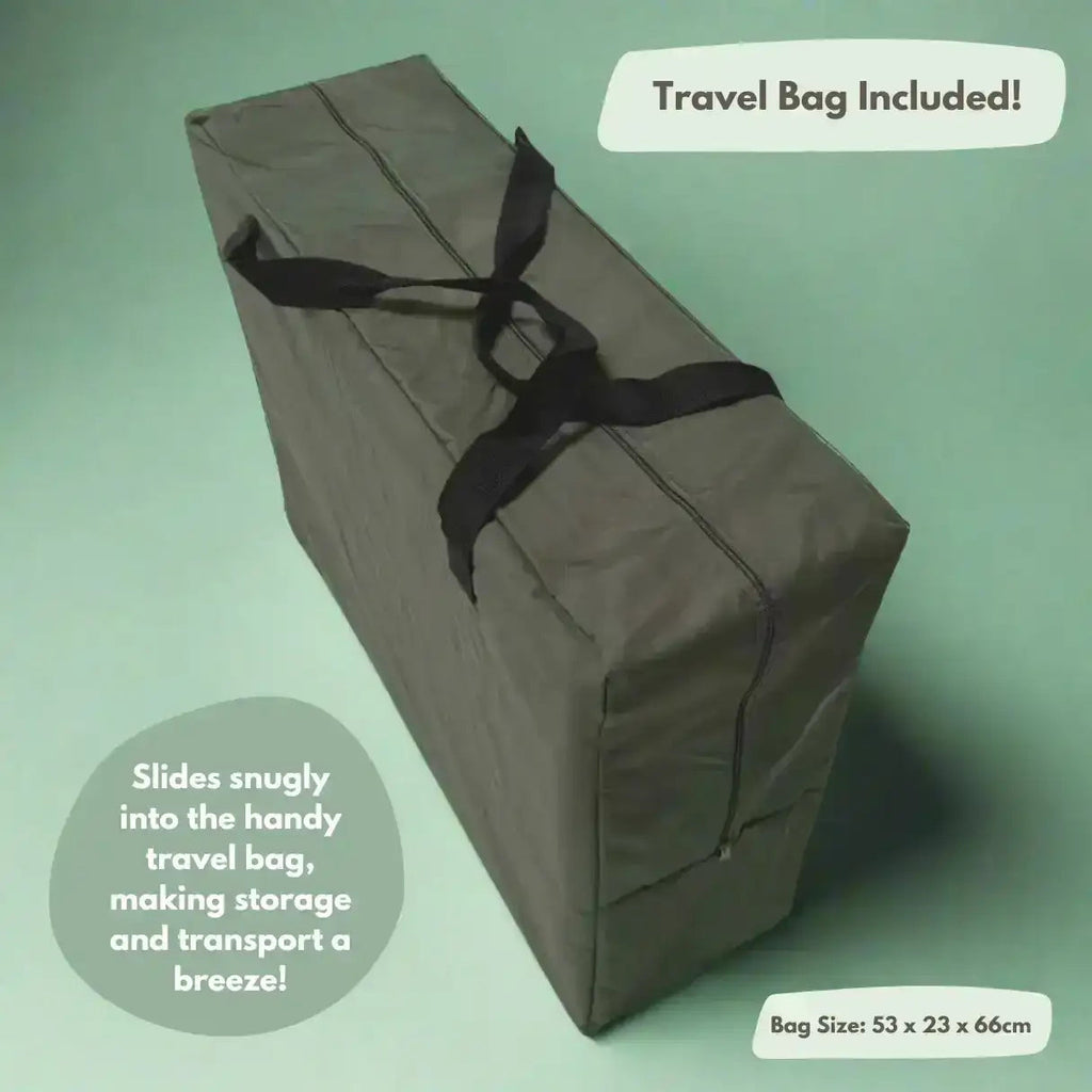 - Compact Fold & Carry Bag: Makes it a truly portable cot solution.