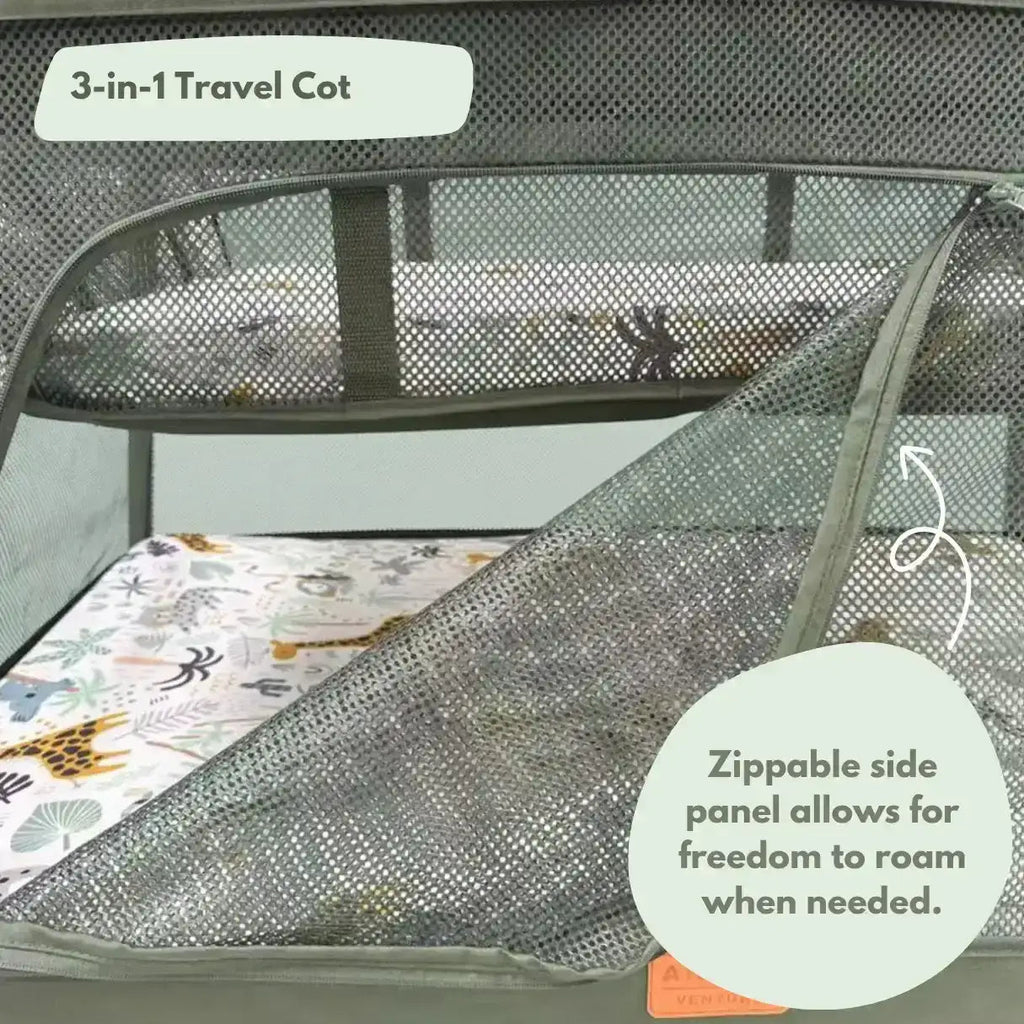 Airpod 3 Travel Cot Includes Newborn Bassinet Insert - Green