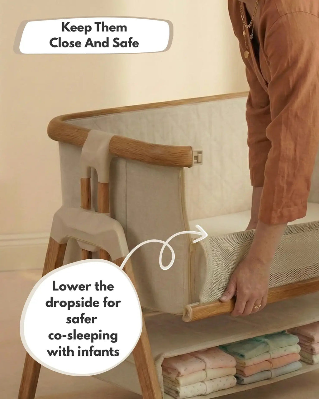 - Safe & Comforting Bedside Crib – Keep your newborn close through the night with the Sona baby bedside crib, designed for safe co-sleeping while giving your baby their own secure sleep space.