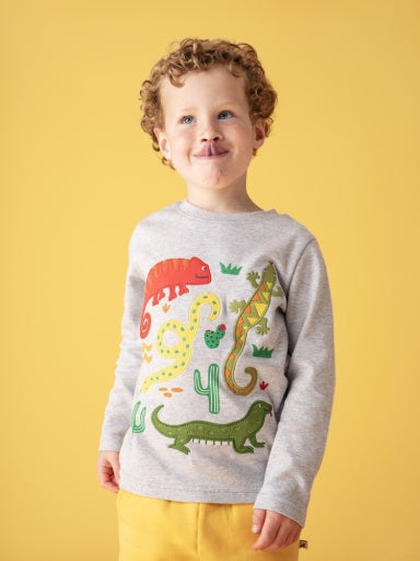 Long sleeve top with a stretchy rib neck and a detailed applique. This GOTS certified product is made with organic cotton, making it soft and breathable. . Certified by Soil Association Certification, license number GOTS-11359.