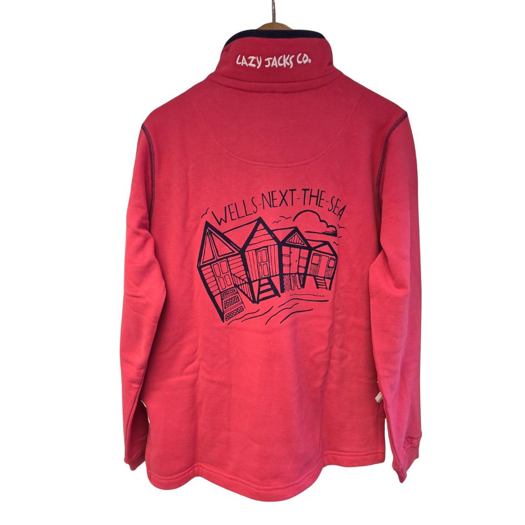 Ladies Cherry/Beach Hut Lazy Jacks Wells-Next-the-Sea Printed 1/4 Zip Sweatshirt
