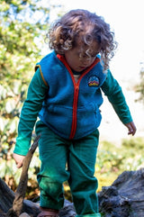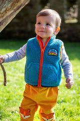 Bude Borg Gilet recycled polyester is made from post-consumer recycled plastic. Features front pockets and badge detail. Oeko-Tex standard 100 certified. This garment is part of Frugi’s Circular Collection, meaning it has been designed to be recycled into new fabrics at the end of its life, helping reduce textile waste. How to Recycle: For UK customers: Request a free returns label by completing the Recycle Me form at welovefrugi.com/recycleme. For customers outside the UK: Please send your item(s) to: Returns: RECYCLE ME Frugi Unit 2 & 2A Lodge Way Indian Queens Industrial Estate St Columb Cornwall TR9 6TF Please package the item securely. Ensure it is clean and that any added repairs or patches have been removed, so the garment is returned in its original fabric state, ready for recycling. Frugi then collate recyclable garments before sending to their partner, LMB, who uses textile to textile recyclers to convert them into new fabrics, helping reduce textile waste. Scan the QR code on the care label for additional FAQs about the recycling process.