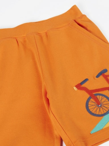 Heavy organic cotton interlock shorts. Features full elasticated waistband, side seam pockets and applique detail. This GOTS certified product is made with organic cotton, making it soft and breathable. Certified by Soil Association Certification, license number GOTS-11359.